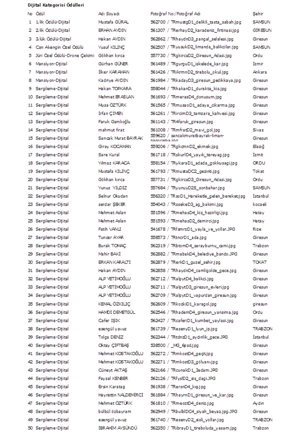 Giresun Belediyesi tarafından bu yıl 1.si düzenlenen “Giresun’da Kültür ve Yaşam” konulu Ulusal Fotoğraf Yarışması sonuçları açıklandı.