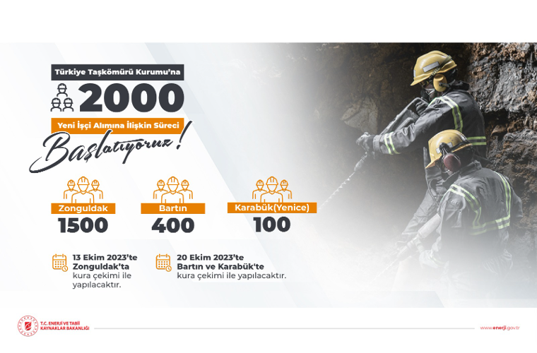 Enerji ve Tabii Kaynaklar Bakanı Alparslan Bayraktar, Türkiye Taşkömürü Kurumuna ekim ayında 3 il için toplam 2 bin işçi alımı yapılacağını açıkladı.