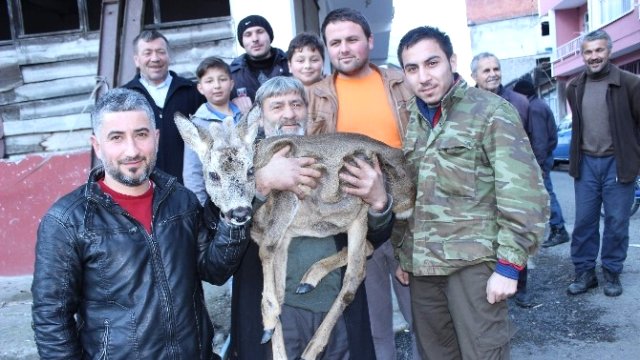Giresun’un Çanakçı ilçesinde dere yatağında, köpeklerden kaçan bir bacağı kırık bir gözü kör yavru karacaya köylüler kurtardı.