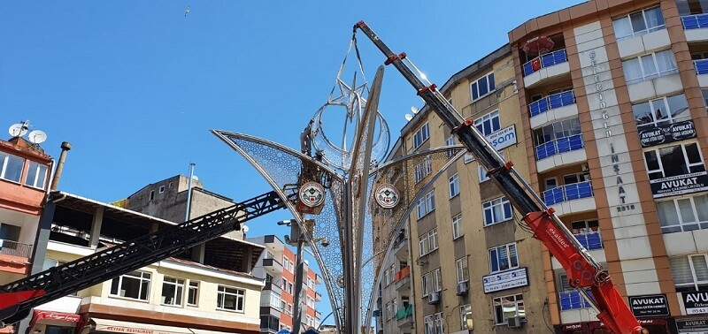 Giresun Belediyesi tarafından, Malpazarı mevkiinde orta refüje konulan aydınlatma direğindeki figür yenileniyor.