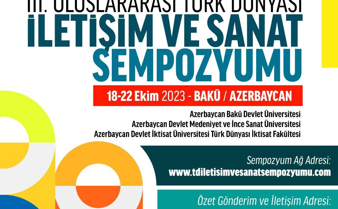 “III. Uluslararası Türk Dünyası İletişim ve Sanat Sempozyumu” Azerbaycan’ın başkenti Bakü’de Azerbaycan Bakü Devlet Üniversitesi,Azerbaycan Devlet Medeniyet ve İnce Sanat Üniversitesi ile Azerbaycan Devlet İktisat Üniversitesi Türk Dünyası İktisat Fakültesi ev sahipliğinde Niğde Ömer Halisdemir Üniversitesi İletişim Fakültesi koordinatörlüğünde 18-22 Ekim 2023 tarihleri arasındadüzenlenecek. “III. Uluslararası Türk Dünyası İletişim ve Sanat Sempozyumu”, iletişim ve sanatın tüm alanlarında bilimsel çalışma yapan sanatçı, akademisyen ve bilim insanlarını bir araya getirecek.