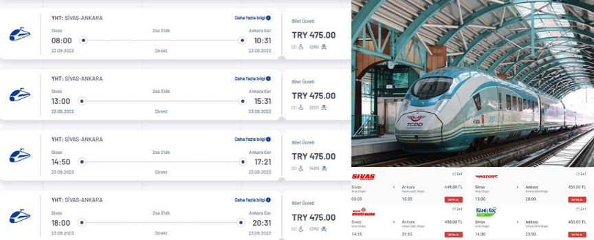 Sivas’ta vatandaşların geçmiş yıllardan bu güne dört gözle beklediği ve 2023 yılı içerisinde Nisan ayında ilk seferlerine başlayan Sivas Ankara arası yüksek Hızlı Tren fiyatlarına son gelen zamla birlikte, Sivas Ankara arası otobüs bilet fiyatlarını geçti.