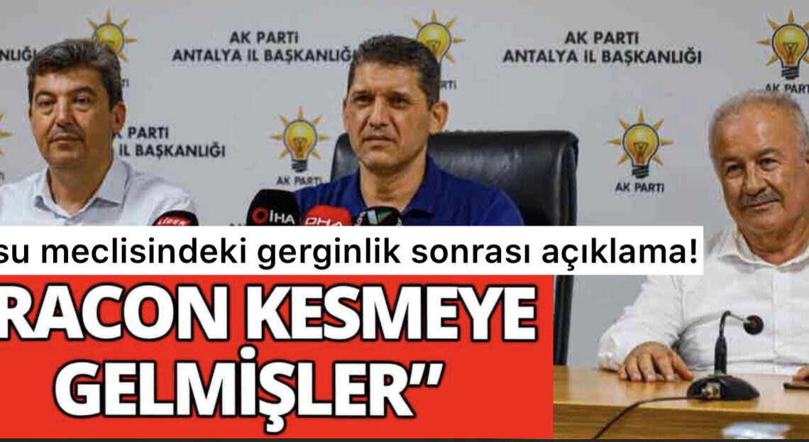 Aksu ilçesinde Belediye Başkanı AK Parti’li Halil Şahin ile İYİ Parti Grup Sözcüsü Ramazan Özen arasında başlayan tartışma sonrası arbede çıktı. Olaya ilişkin AK Parti Antalya İl Başkanı Ali Çetin ile Aksu Belediye Başkanı Halil Şahin, il binasında açıklama yaptı. AK Parti İl Başkanı Çetin, “Kabadayı bir görüntü ile gelip ‘Buraya hesap sormaya geldik’ dediler. Racon kesmeye geldiklerini gördük. Bu yaklaşım hiçbir partiye yakışmaz” dedi.