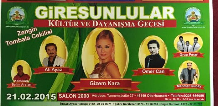 Almanya’da etkin derneklerimizden biri olan Mülheim Giresunlular Kültür ve Uyum Derneği 21 Şubat gecesi 2015 yılının ilk Giresunlular dayanışma organizasyonunu gerçekleştiriyor.