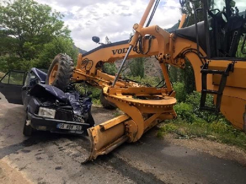 Alınan bilgiye göre, Şebinkarahisar ilçesinin Tepeköy Köyü’ne yol çalışmasına giden Köylere Hizmet Götürme Birliği’ne ait K.B. yönetimindeki iş makinesi ilçenin Balcana Yenidoğan mahallesi mevkiinde karşı yönden gelen Aydın Dadın’in kullandığı otomobil ile çarpıştı.