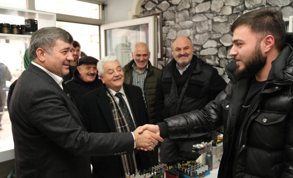 Gerçekleştirdiği ziyaretlerde, esnafa ‘Hayırlı işler ve bereketli kazançlar’ dileyen Atekin Şenlikoğlu, esnaf ve vatandaşlarla sohbet ediyor.
