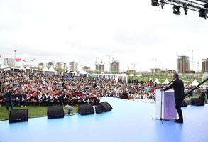 Egemenliğin eğitimden geçtiğinin altını çizen Özer, “Ülkelerin rekabet edebilme kapasitesi doğrudan eğitime erişimle ilişkili. Son 20 yıl bu bağlamda Sayın Cumhurbaşkanımızın liderliğinde eğitimde devrimsel bir dönüşüme tanıklık etti, devasa eğitim yatırımları oldu. Okullar yapıldı, derslikler yapıldı. Ve tüm çocuklarımızın eğitime erişimi sağlandı. Beş yaştaki okullaşma oranları yüzde 11’den yüzde 99’lara ulaştı. Eğitimin tüm kademelerinde Türkiye Cumhuriyeti tarihinde ilk kez eğitimde okullaşma oranları yüzde 99’a ulaştı. Buradan Sayın Cumhurbaşkanımıza ülkemizin çocuklarına, gençlerine vermiş olduğu değerden dolayı şükranlarımı arz ediyorum.” dedi.