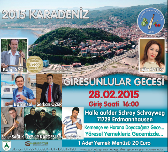 Giresun dernekçiliğinin Avrupa’da yüüz akı Karadeniz Giresunlular Bw Derneği 2015 yılı dayanışma gecesi kadrosu ile adeta Avrupayı ayağa kaldırdı.