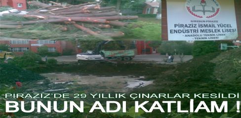 Türkiye Cumhuriyetinin Yeşilin hastası bir başbakan’ın yönetimindeki Giresun’un Piraziz ilçesi İsmail Yücel Endüstri Meslek Lisesi bahçesine yurt yapılacağı gerekçesi ile asırlık Çınar ağaçlarının kesilmesi ilçe halkı başta olmak üzere ülke çapında infaal yarattı.