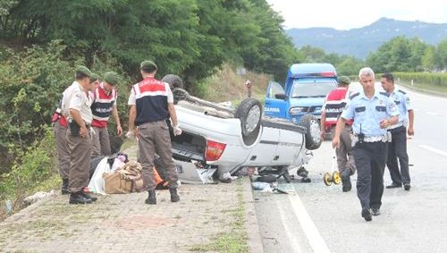 Giresun’un Keşap ilçesi Kılıçlı Mevkiinde bugün meydana gelen trafik kazasında Giresun’dan Trabzon istikametine gitmekte olan 06 HYF 84 plakalı araç sürücüsünün direksiyon hakimiyetini kaybetmesi ile takla attı.