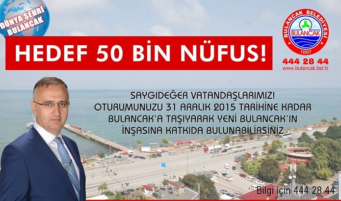 Bulancak Belediye Başkanı Recep  Yakar: “İller Bankasından Belediye bütçelerine her ay kişi başına göre ödenek aktarılmaktadır. Aktarılan bu ödenekler her yılın son ayındaki kayıtlı nüfusa göre belirlenmektedir. 2015 yılı Aralık ayı sonu itibariyle ulaşacağımız nüfus bizim 2016 yılı ödeneklerimiz belirleyecektir. İlçemizde yaşadığı halde oturumu merkezde olmayan vatandaşlarımızın nüfuslarının yıl sonuna kadar merkeze aldırmaları gerekmektedir.