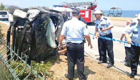 Giresun istikametinden Ordu istikametine gitmekte olan 61 DZ 998 plakalı otomobil hızını alamayarak ilçe merkezi ana yol üzerinde bulunan orta refüje ait elektrik direğine çarptı. Yaklaşık 15 metre takla attıktan sonra durabilen araçta bulunan karı koca Küçükömeroğlu ailesi yaralı olarak kurtuldu.