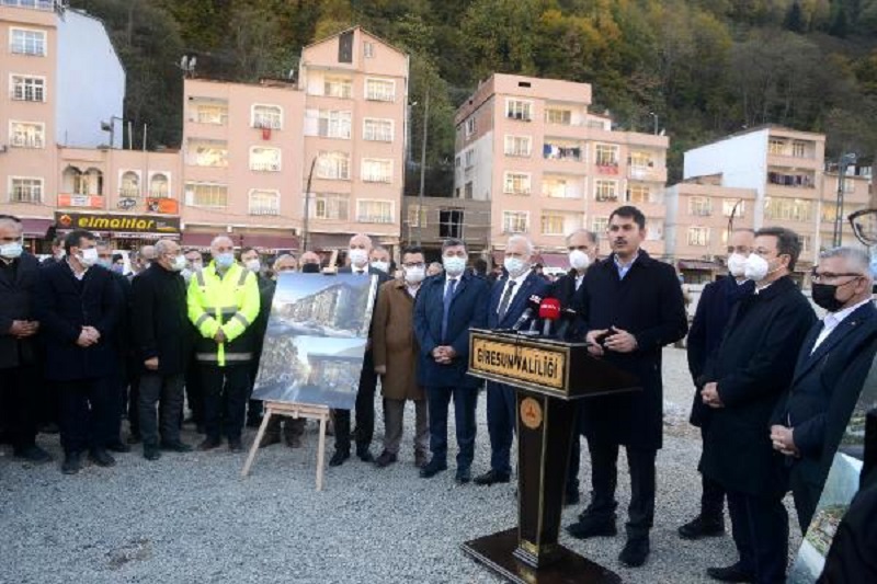 618 BAĞIMSIZ BÖLÜMDEN OLUŞAN 250 KONUT YAPIYORUZ’22 Ağustos’ta meydana gelen sel sebebiyle Dereli merkezinde çok büyük hasar meydana geldiğini, vatandaşların hayatını kaybettiğini, birçok yaralı vatandaşın da selden, heyelandan etkilendiğini hatırlatan Çevre ve Şehircilik Bakanı Murat Kurum, “Yine Yağılıdere’de, Doğankent’te, birçok köy evimizde de hasarlar meydana gelmişti. Hemen olay olur olmaz ilgili tüm bakanlarımızla birlikte Derelimize gelip 15 gün vatandaşımızla birlikte olmak suretiyle Dereli’de, Doğankent’te, Yağlıdere’de, Giresun’un tüm köylerinde mahalle mahalle gezmek suretiyle vatandaşlarımızın ne ihtiyacı varsa giderecek çalışmaları hızlı bir şekilde yapma gayreti içerisine girdik. Vatandaşımızın ilk andaki acil taleplerini karşılamak, akabinde hasar tespit çalışmaları ve aynı zamanda da yeni yapılacak konutların çalışmalarını yürüttük ve sayın Cumhurbaşkanımız Dereli ve Giresun’a yapmış olduğu ziyarette yeni Dereli projemizi Giresun ve tüm Türkiye ile paylaşmıştı. O günden bugüne yapmış olduğumuz çalışmalarda hem Dereli, hem Doğankent, hem merkezde ve hem de köylerinde toplamda 618 bağımsız bölümden oluşan 250 köy konutu yapıyoruz” dedi.’HAZİRAN AYINDA TAMAMLAYACAĞIZ’Dereli merkezde ticari ünitelerin, belediye binasının ve sosyal alanların olduğu yine dere güzergahı üzerinde inovasyon alanları, millet bahçesi düzenlemeleri yapılacağını söyleyen Bakan Kurum, açıklamasını şöyle sürdürdü: “İhalelerimizin hepsini yaptık ve vatandaşlarımıza söz verdiğimiz şekilde 2021 yılının Haziran ayı içerisinde tamamlayıp inşallah daha sağlam, daha yaşanabilir, daha güvenli Derelimizi, Doğankentimizi ve köy konutlarımızı vatandaşlarımıza teslim ediyor olacağız. Tüm alanlarda çalışmalarımız fiilen devam etmekte. Yine ilgili bakanlıklarımızda bugün için yapılması gereken tüm çalışmaları büyük fedakarlık örneği göstererek valiliğimiz koordinasyonunda çalışmalarını yaptılar. Şimdi de kalıcı imalatlara ilişkin tüm bakanlıklarımız süreçleri yürütüyorlar. Tabi tüm dünyanın etkilendiği, ülkemizin de Akdeniz havzasında yer alamsı, iklim değişikliğinin etkilerinin sayısının, gücünün artık şehirlere çok daha fazla zarar verdiğini hep birlikte görüyoruz, şahit oluyoruz. Bu çerçevede ilk önce Karadeniz Bölgesi’ne ilişkin bir iklim değişikliği eylem planı hazırlamış, tüm bölgemizle paylaşmıştık. Bu çerçevede de çalışmalarımızı da yürütüyoruz. İnşallah bu projemiz de tüm bölgemize örnek teşkil edecek. Dere taşkın kodunun üzerinde herhangi bir heyelan, sel riski taşımayacak, yine bu bölgedeki tüm alanlarda taşkın riski taşıyan binaların tespiti, o binalara ilişkin taşınma süreçlerini de ilgili valilik, belediyelerimizle yürütüyoruz. Bu çerçevede Giresun Bulancak’ta, Trabzon, Rize’de rezerv konutlar üretmek yine o konutlara dere güzergahı üzerinde kalan vatandaşlarımızın taşınma sürecini de eş zamanlı yürütüyoruz”‘SÖZ VERDİĞİMİZ GİBİ BİTİRİYORUZ’Elazığ’da tarihin en büyük dönüşüm projesini de 2 bin 500 konutla tamamladıklarını ifade eden Bakan Kurum, “Söz verdiğimiz gibi 8 bin konutu yıl sonunda, kalan konutları da önümüzdeki yılın ortalarına kadar bitirerek veriyoruz. İzmir’de de eş zamanlı çalışmalarımız devam etmekte. Nerede afet olsa, nerede bir afet yaşansa devletimiz sayın Cumhurbaşkanımızın talimatları çerçevesinde tüm birimleriyle vatandaşlarımızın yaralarını sarmak için seferber olmuştur, inşallah da olmaya devam edecektir. Tüm çalışmalarımız ve emeklerimiz vatandaşlarımızın duasını almak, onları daha sağlam, daha güvenli, daha yaşanabilir alanlarda oturtmak içindir. Bu süreçte hem arama kurtarma, hem de enkaz kaldırma çalışmalarında faaliyet gösteren tüm ekiplerimize, belediye başkanlarımıza, muhtarlarımıza, vatandaşlarımıza, milletvekili ve valilerimize teşekkür ediyorum” dedi.