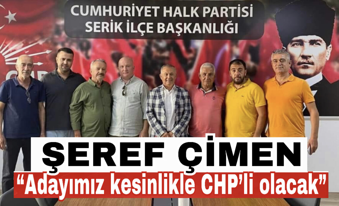 Cumhuriyet Halk Partisi Serik ilçe Başkanı Şeref Çimen, 2024 Mahalli idareler seçimi için belediye başkan adayının kesinlikle CHP üyesi olan ve parti tabanını onayladığı, ön seçimde belirleneceği bir aday olacağını söyledi. İlçe başkanı Çimen, parti binasında düzenlediği basın toplantısında,