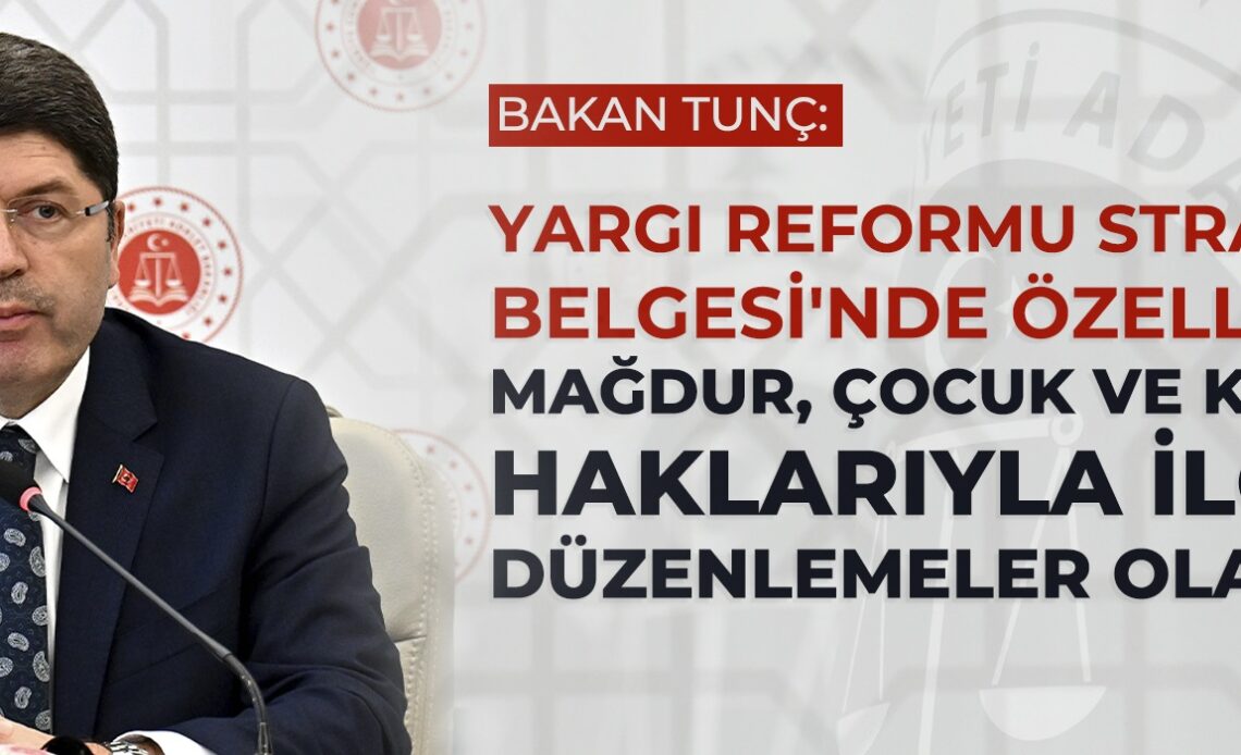 Adalet Bakanı Yılmaz Tunç, bakanlığın çalışmaları arasındaki Yargı Reformu Strateji Belgesi’nde mağdur hakları, çocuk ve kadın haklarıyla ilgili düzenlemelerin yer alacağını bildirdi.