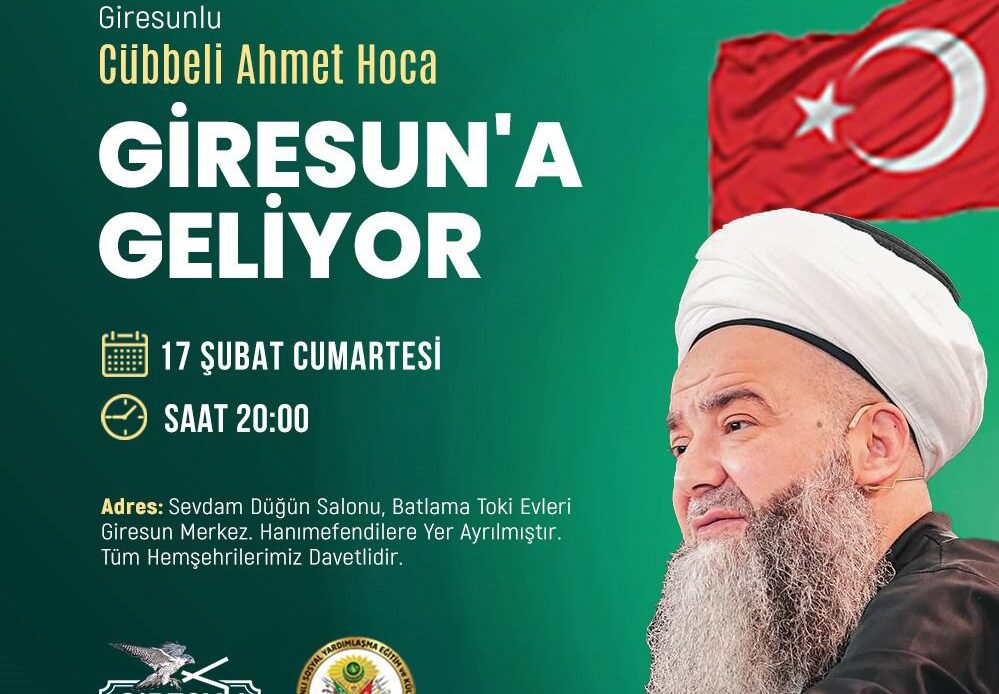 Serkan Cihan, yaptığı açıklamada, “Giresunlu hemşerimiz Cübbeli Ahmet Hocanın Giresun sohbet programına katılımlarınızı bekliyoruz. 17 Şubat Cumartesi saat 20.00’de Batlama’daki Sevdam Düğün Salonunda gerçekleştirilecek olan sohbet programına tüm Giresunluları davet ediyoruz” dedi.