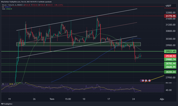 Pozitif senaryoda ise Bitcoin için oldukça kritik direnç seviyesi olarak 29.520$ test edilebilir. Ardından da 50 günlük hareketli ortalama seviyesi olan 29.850$ güçlü bir direnç seviyesi olarak karşımıza çıkıyor.