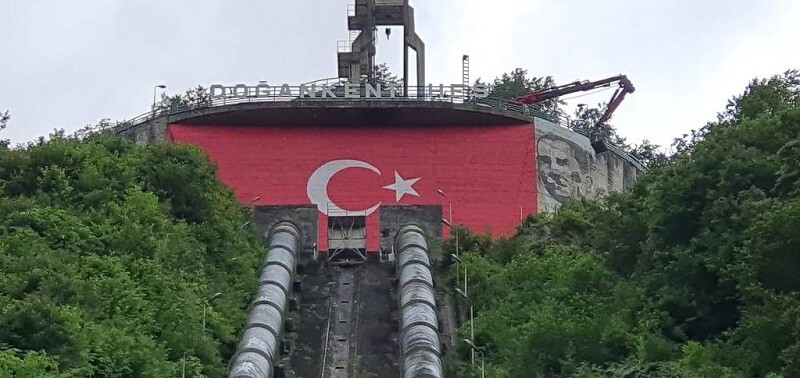 Giresun’un Doğankent İlçesinde kurulu Kuzey Enerji Hidro Elektrik Santrali Denge Kulesinde bulunan Türk Bayrağı yapılan tadilat ile yeniden boyanarak ilçenin tamamına hakim tepeden ihtişamını sergilemeye devam ediyor.