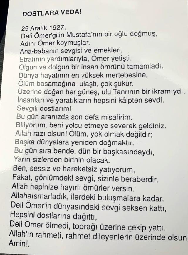 Hayırsever Dr. Ömer Gürel, mezarını yaptırdığı günlerde, “Kendimi artık ölüme hazır hissediyorum, vaktim geldi. ” diyerek mezarını ve mezar taşını yaptırdıktan sonra bir de şiir yazarak mezar taşına koydurmuştu.