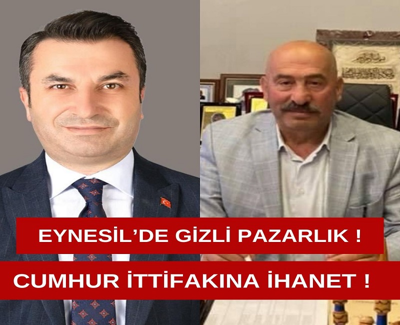 Edindiğimiz bilgilere ve iddialara göre Ak Parti eski Eynesil Belediye Başkanı Coşkun Somuncuoğu, CHP’li Belediye Başkanı Ahmet Latif Karadeniz ile yaptığı görüşmede Cumhur ittifakının kazanmaması için gizli ittifak yaparak Halil Kaya’yı bağımsız Belediye Başkan adayı olarak çıkardı. Geçtiğimiz seçim bir birilerine düşman olan Somuncuoğlu ve Karadeniz’i bu seçim ne bir araya getirdi merak konusu oldu.