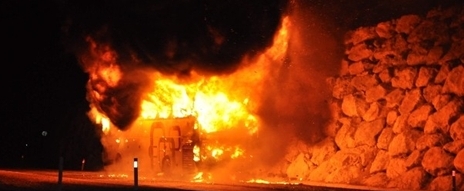 Kısa sürede alev topuna dönen otobüsteki yangın gecenin karanlığını aydınlattı. Otobüs tamamen yanarak kullanılmaz hale gelirken, yolcuların eşyaları da kurtarılamadı.
