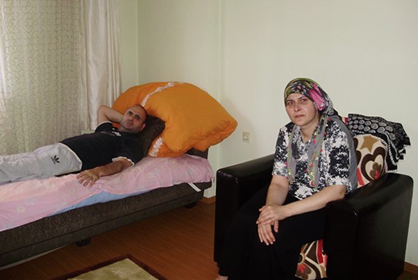 Eşimin sigortada birikmiş prim borçlarının hayırsever bir iş adamı tarafından ödenmesi sayesinde malulen emeklilik hakkı kazandık. Allah bu hayırsever iş adamımızdan da razı olsun. Maddi ve manevi açıdan çok sıkıntılar çektik ve çekmeye devam ediyoruz. 10 yıllık bu süreçte birçok yere borçlanmak zorunda kaldık. Hastalıkla mücadele etsek de bir taraftan da hayat devam ediyor. Evin ihtiyaçları, çocukların ihtiyaçları tabii ki var. Biz de bu durumdan dolayı bazı esnaflara borçlandık. Kimisi mağduriyetimizi görerek borcu sildi. Kimileri de doğal olarak borcunu istiyor. Çünkü onların da çoluk çocuğu var. Eşimin malulen emekli olmasında dolayı bağlanan maaşın tamamı, esnafa olan borcumuzu ödemek için bankadan çektiğimiz kredi borcuna gidiyor. Hasta bakım parası da alıyorum ancak bu para da sürekli almak zorunda olduğum bez ve ilaçlarına gidiyor. İlaçları düzenli almazsa sürekli uyku haline geçiyor. Ondan dolayı ilaçları sürekli almak zorundayız. Yarı aç, yarı tok; yarı ağlayarak, yarı gülerek hayata tutunmaya çalışıyoruz.