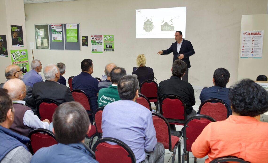 Toplantıda fındık üreticilerine istilacı bir tür olan kahverengi kokarca zararlısı ile ilgili bilgiler verilirken, mücadele yöntemleri hakkında da bir sunum gerçekleştirildi. Sunumda Kahverengi kokarca ile mücadelenin kimyasal, biyolojik ve mekanik mücadele yöntemleri ile gerçekleştirildiği belirtildi. Bu mücadele yöntemlerinin dönemleri olduğunun altı çizilirken, içerisinde bulunduğumuz dönemde zararlıya karşı mekanik mücadele yapılması konusunda fındık üreticileri uyarıldı. Mekanik mücadelede kahverengi kokarcanın görüldüğü yerde imha edilmesi gerektiği vurgulanarak mekanik mücadelenin önemine değinildi. Ayrıca zamanı geldiğinde diğer mücadele yöntemleri ve şekilleri ile ilgili bilgilerde fındık üreticileri ile paylaşıldı. Toplantıda, kahverengi kokarcanın özellikle kış aylarında kışlak olarak kapalı alanları tercih ettiği bu nedenle kışlaklarda mücadelenin çok önemli olduğu belirtilerek, gerekli ilaç ve personel desteğinin verileceğinin altı çizildi.