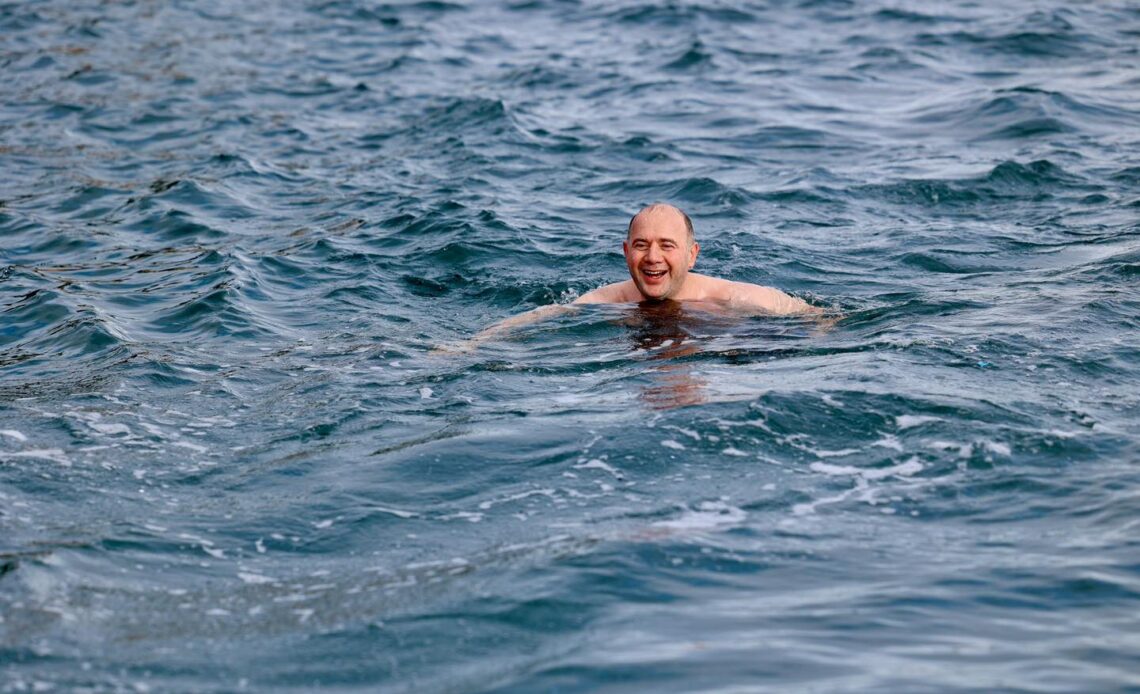 Deniz suyu sıcaklığının 6 dereceleri gösterdiği Giresun’da Giresun Valisi Mehmet Fatih Serdengeçti, denize girerek soğuk sularda bir süre kulaç attı.
