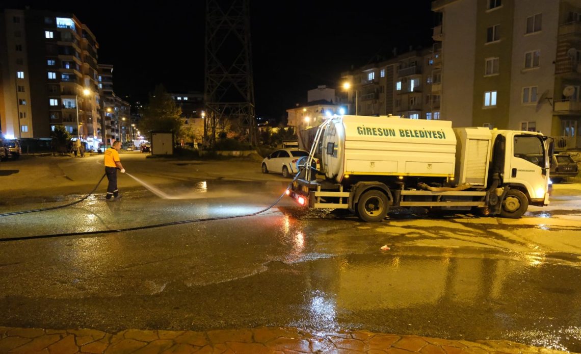 Şehrin dört bir yanında hummalı bir çalışma sürdüren Giresun Belediyesi’ne bağlı ekipler gecenin ilerleyen saatlerine kadar çalışmalarını sürdürüyor.