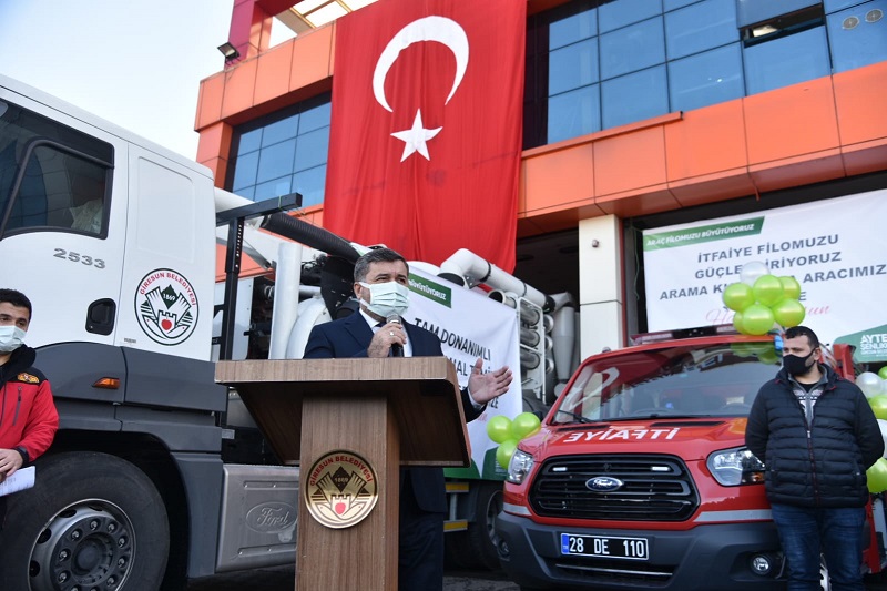 Diğer yandan, Giresun Belediyesi trafik kazaları ve arama kurtarma da ilk müdahale için araç filosuna bir araç daha kazandırdı. Belediye bütçesiyle 365 bin liraya mal edilen aracın 300 litre su ve 30 litre köpük tankına sahip olduğu bildirildi. Törende bu aracıda tanıtan Başkan Şenlikoğlu, aracın Giresun’a ve Belediyeye hayırlı olmasını diledi.