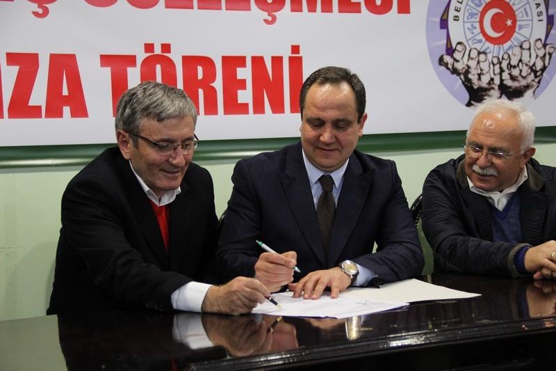 Konuşmaların ardından Giresun Belediye Başkanı Kerim Aksu ile Belediye-İş Sendikası Genel Başkanı Nihat Yurdakul, toplu sözleşmesine imza attı