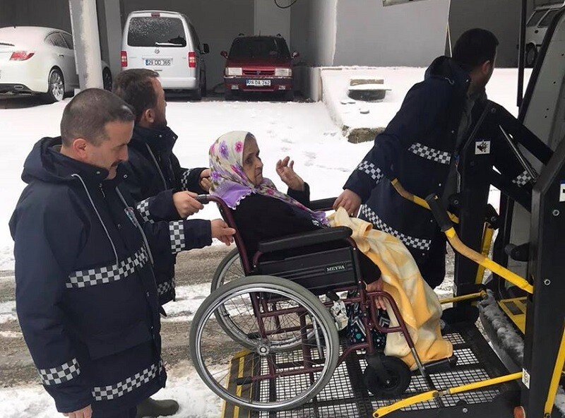 Belediye Evde Bakım ve Sağlık Hizmetleri Birimi ise yoğun kara rağmen görevini aksatmadı.