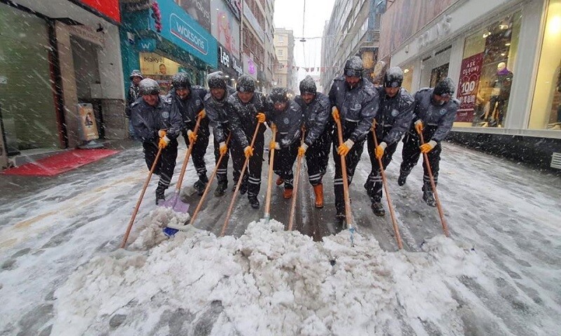 Kar mücadelesini kapsamlı bir şekilde sürdüren belediye ekipleri ana arterlerin sürekli açık kalmasını sağlarken, yollarda iş makinalarıyla kar küreme çalışmalarının yanı sıra, yayaların güvenliği için kaldırımlarda kürekle temizlik çalışmaları da gerçekleştirildi. Don ve buzlanma olaylarında sorun yaşamaması için yaya kaldırımlarında kar küreme çalışmaları titizlikle sürdürüldü.