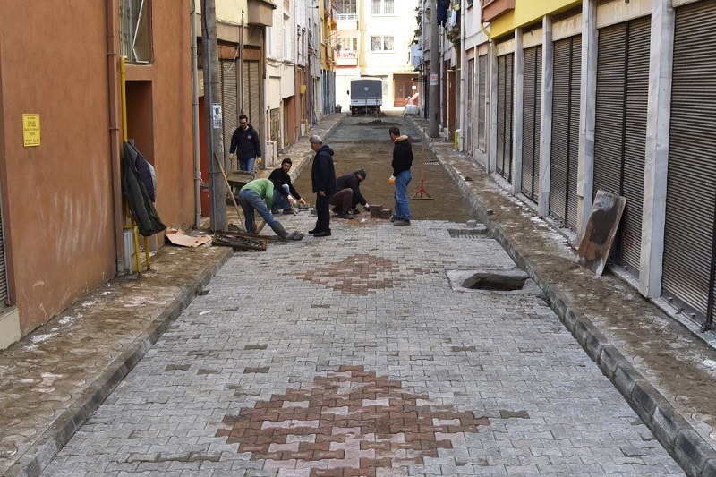 Müdürlük bünyesine bağlı bir ekip tarafından da Çıtlakkale Mahallesi Sardunya Sokak’ta mevcut kaldırımda yenileme çalışmaları yapılıyor. Eski ve bozuk olan kaldırım taşları sökülerek yeni bir zemin düzenlemesi ve ardından parke taşlarının döşenmesi yapılıyor.
