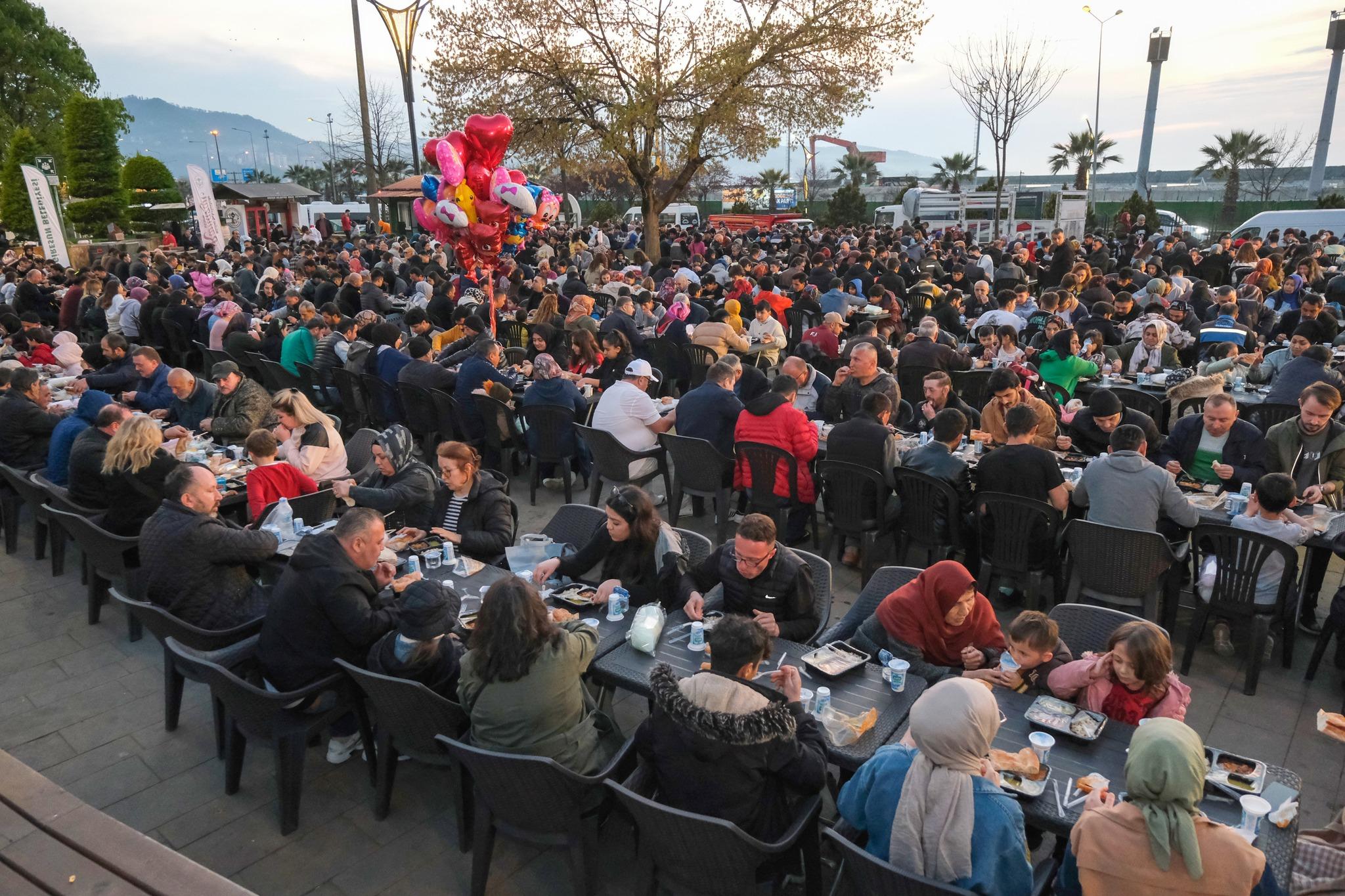 Pazar günü Atapark’ta kurulan iftar yemeğine yoğun bir katılım oldu ve yaklaşık 3 bin kişi aynı sofrada oruçlarını açtı.