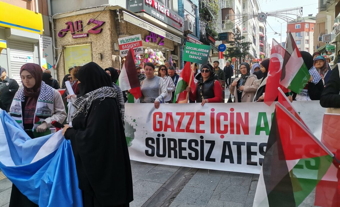 Oluşan kortej yürüyüş sırasında sık sık İsrail aleyhine sloganlar atıldı. Atatürk meydanında yapılan toplu dua ve kınama metni okunması sonrası topluluk alandan ayrıldı.