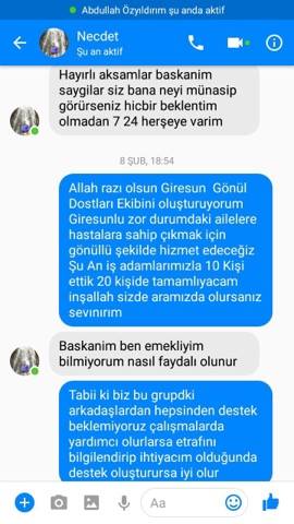 Uzun yıllardır Giresun camiasına gerek dernekçilik gerekse de sosyal alanda yaptığı hizmetler ile büyük takdir kazanan Abdullah Akgün tarafından hem Watsap hemde Facebouk üzerinden kurulan Giresun İnsan Kaynakları grupları ile hemşerileri arasında kurduğu köprü sayesinde bir çok işsiz hemşerisine iş buldu.