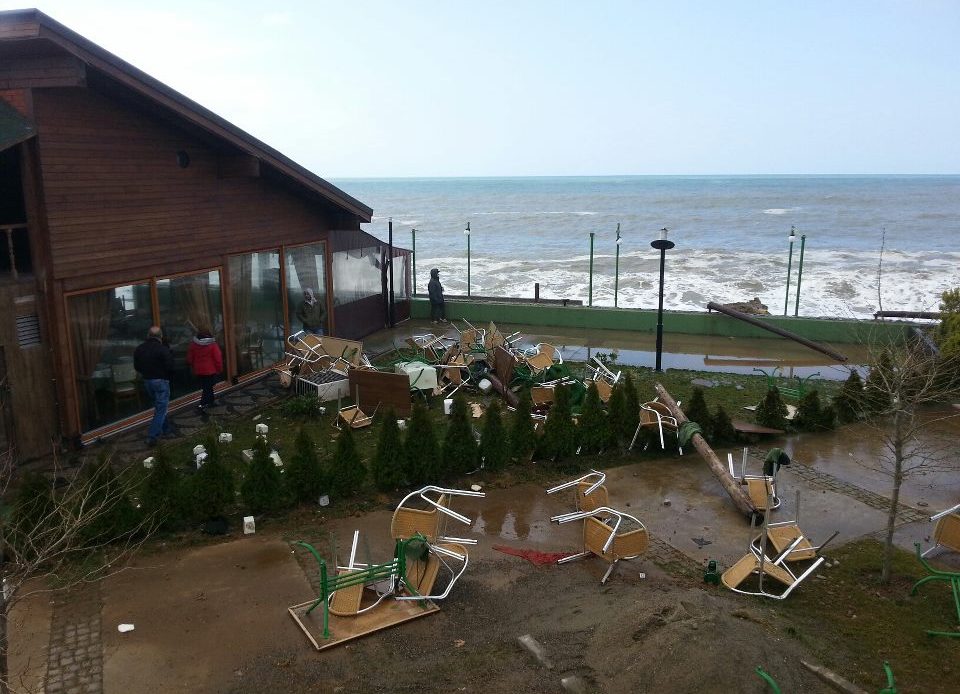 Sabaha karşı şiddetini artıran boyu 6 metreyi bulan dalgalar sonucu Sahil dolgu alanında bulunan Cumhuriyet Parkı’ndaki iş yekleri zarar gördü.