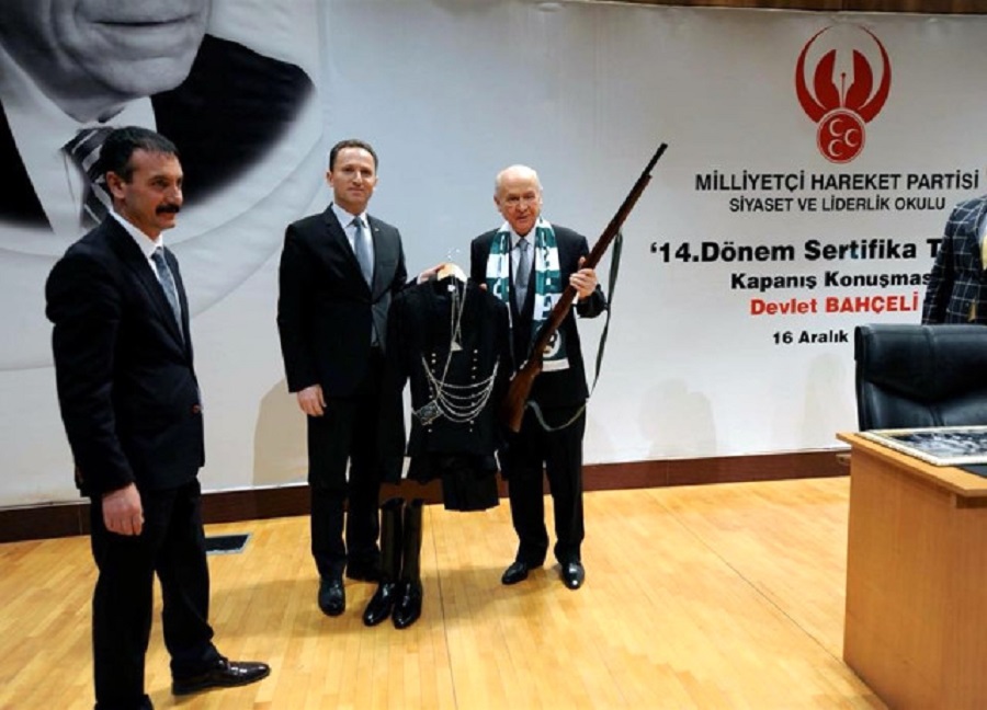 Karakalpak ve tüfek hediyesinden memnun kalan Dr. Devlet Bahçeli, memnuniyetini esprili bir dille ifade ederek, “Artık Afrin’deki bölücü unsurlar düşünsün” dedi.