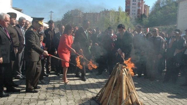 Konuşmanın ardından Rektör Prf. Dr. Aygün Attar, Belediye Başkanı Kerim Aksu ve Jandarma Bölge Komutanı Tuğgeneral Mustafa Doğru örs üzerinde demir dövüp sonra nevruz ateşini yakarak üzerinden atladılar ve daha sonra halk oyunları gösterisinde halay çektiler.