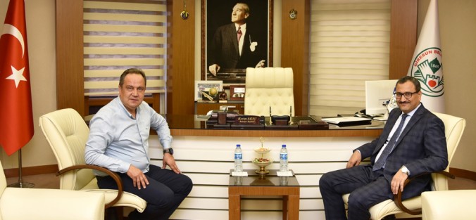 Giresun Valisi Harun Sarıfakıoğulları, Giresun Belediye Başkanı Kerim Aksu’yu makamında ziyaret etti.