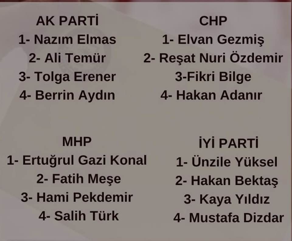 Millet İttifakı Cumhuriyet Halk Partisi 1. Sıra Adayı Elvan Işık Gezmiş İY Parti 1. Sıra Ünzile Yüksel oldu.