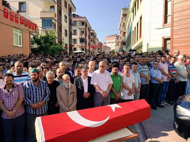 Boğaziçi köprüsündeki olaylarda ilk müdahale eden sivil ekip içinde yer alan Alucra Koman Köyünden Mahmut Coşkunsu’nun cenazesi Ümraniye Çakmak Mahallesi Çamlık Camiinden kaldırıldı.