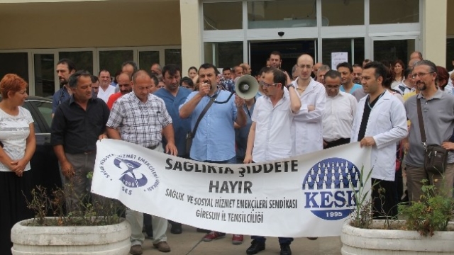 Giresun Tabipler Odası ve sağlık sendikaları tarafından Giresun Prof. Dr. İlhan Özdemir Devlet Hastanesi acil servisinde görevli Dr. Serap Alicanoğlu hasta yakınları tarafından darp edildiği öne sürülerek olay protesto edildi.
