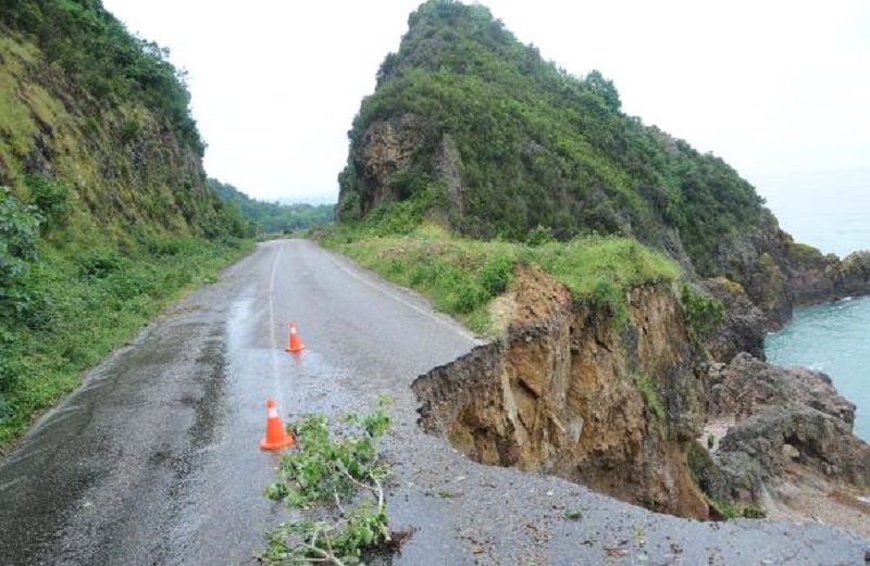 Giresun’da, dün etkili olan şiddetli yağışta meydana gelen heyelan nedeniyle bir süre ulaşıma kapanan Espiye ilçesi Ulu burun Tüneli yakınındaki plaj yolu, dalga ve sel suları nedeniyle çöktü.