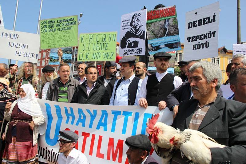 Giresun’un Dereli ilçesi Aksu Vadisini Koruma Platformu tarafından gerçekleştirilen Hidroelektrik Santrali protestosu Malpazarı mevkiinden yürüyüşle başladı. Malpazarı mevkiinde Dereli Tepeköy Köyü Kalkındırma ve Yardımlaşma Derneği tarafından köylüler ellerinde Hidroelektrik Santrallerine tepki gösteren pankartlar bulunduğu halde yanlarında koyun, sığırlarla birlikte davul, zurna, kemençe eşliğinde yürüyerek Atatürk Meydanı’na gelindi.