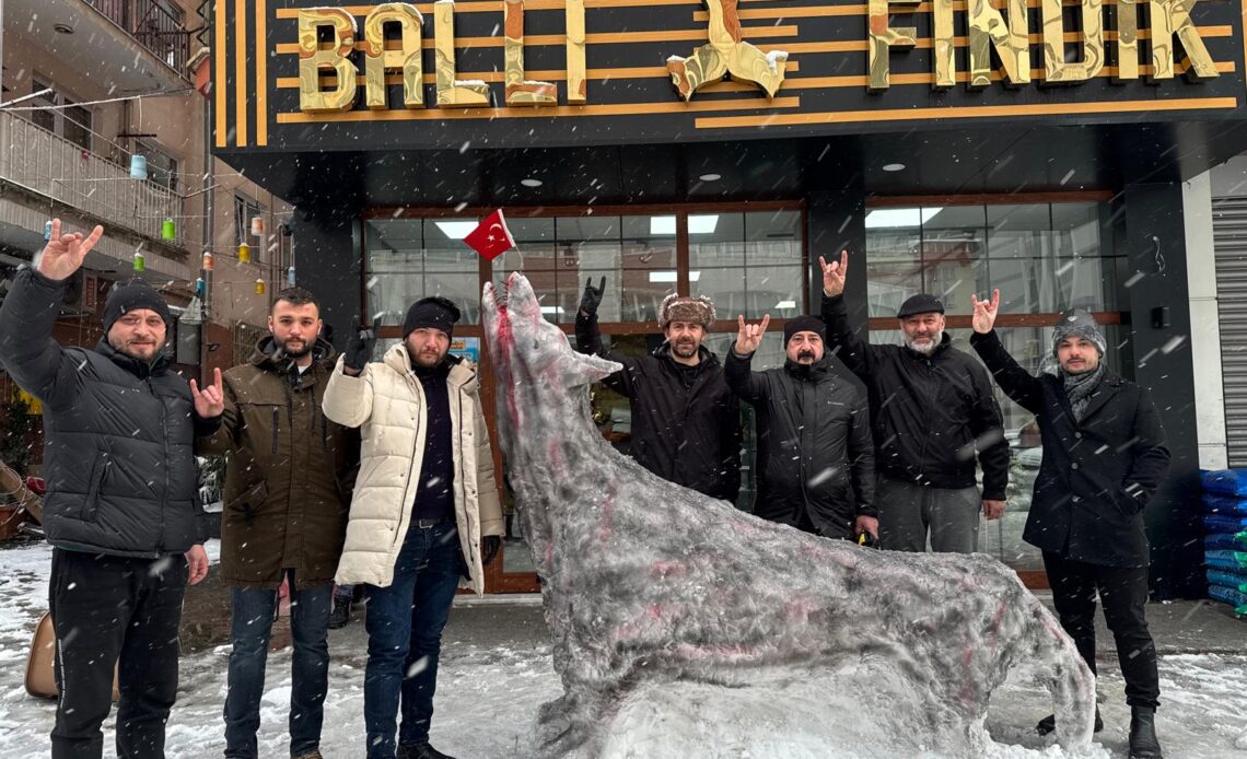 Bozkurt’un önüne Türklerin Ergenekon’dan çıkış efsanesindeki demirci Börteçine ismini simgeleyen tabela ve Türk Bayrağı’da koyan MHP’liler, oldukça gerçekçi olan kardan bozkurt önünde ülkücü selamıyla poz verdiler.