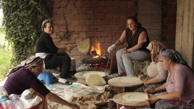 Emine Kaya “Böyle ev hanımları birbirimize yardım ederek her yıl yufka açıyoruz. Çünkü yufkamız Ramazan ayında özellikle sahur için ve fındık toplama döneminde biz ev hanımları için oldukça pratik ve lezzetli bir yiyecek” dedi.