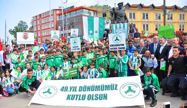 Türk futbol tarihinin en köklü takımlarından PTT 1. Lig ekibi Giresunspor’un kuruluşunun 49. yıl dönümü törenle kutlandı. Debboy mevkinde yürüyüşle başlanan kutlama etkinlikleri daha sonra Atatürk Meydanında gerçekleştirilen törenle devam etti.