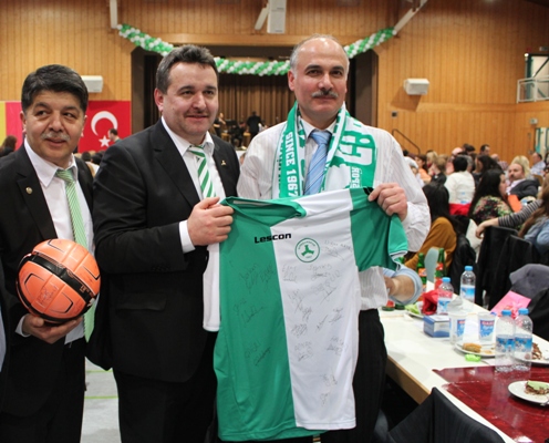 Bir süre önce Stuttgart yakınlarında Erdmannhausen Halle Auf Der Shcray’da Karadeniz Giresunlular Derneği tarafından düzenlenen dayanışma gecesinde Giresunspor forması ve imzalı topu satın alan iş adamı forma ve topu baş tacı etti.